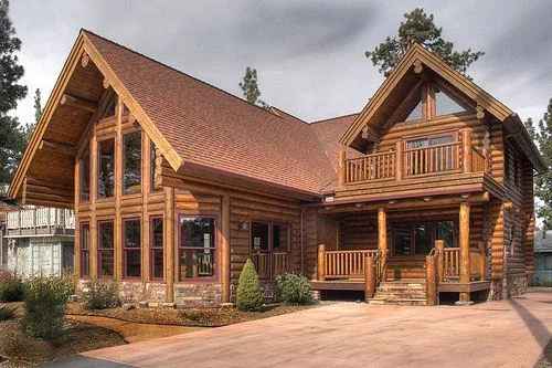 Large family style home that has the room for more bedrooms and or larger more spacious rooms. This design has the square footage for “play rooms” for specific activities, such as: crafts rooms, sewing rooms, offices, sports rooms, etc. Sierra specializes in custom home design. If our standard plan is almost right, let us make it perfect for you. It doesn’t mean it will cost more, it just means it will be exactly what you and your family want. So contact us, and let’s start by finding out what you need. This model was built with a 10″ swedish cope standing dead pine log with a hand peeled finish. All the gables and dormers are solid log. The prow is built with a 12″ log post. The project was built in southern california.